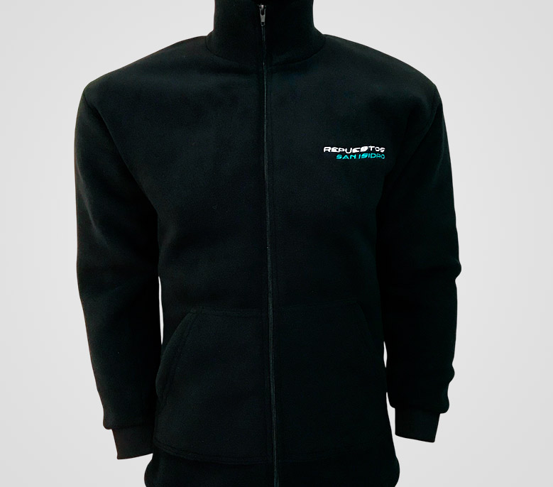 Campera confeccionada en Polar, de corte regular, cuello alto, cierre desmontable y bolsillos laterales invisibles; con posibilidad de personalizar diseño.