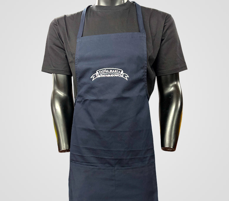 Delantal confeccionado en gabardina, tipo regulable; con posibilidad de personalización del diseño. Ideal para uniformar a tu equipo con identidad personal y calidad.
